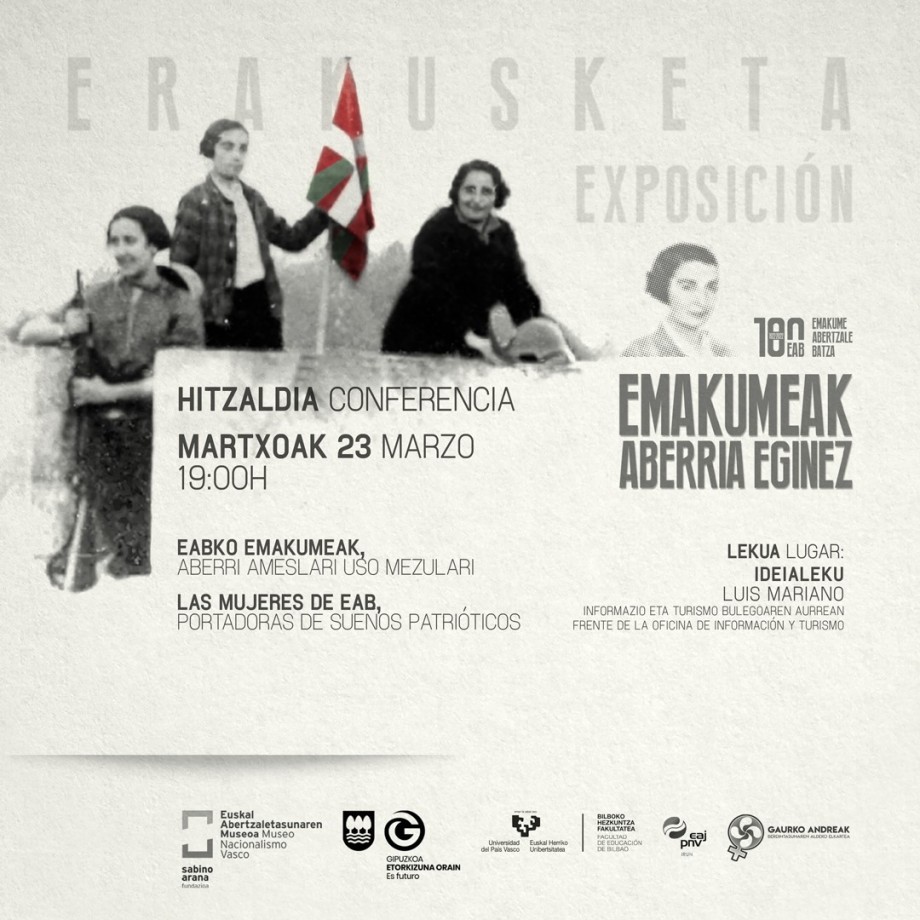 Conferencia impartida por las profesoras de la Facultad de Educación e investigadoras del Grupo Garaian de la UPV-EHU, Karmele Perez Urraza, Begoña Bilbao Bilbao y Gurutze Ezkurdia Arteaga, con la iniciativa de la asociación de mujeres locales “Gaurko Andreak Berdintasunaren Elkartea”, sobre los orígenes y desarrollo de Emakume Abertzale Batza (EAB) en este municipio gipuzkoano por iniciativa de la asociación de mujeres locales “Gaurko Andreak Berdintasunaren Elkartea”.