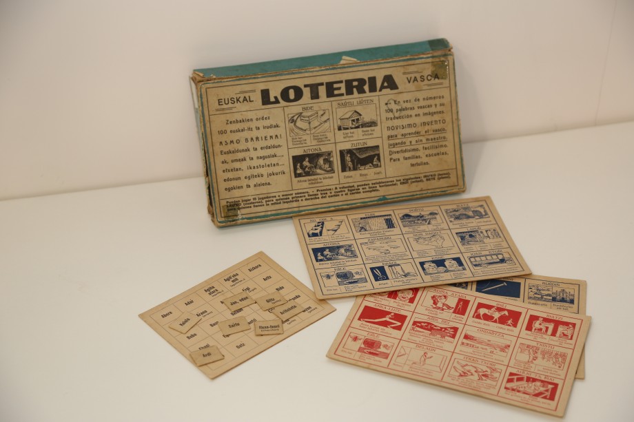 Juego creado por Federico Belaustegigoitia en torno a 1930. "NOVISIMO INVENTO para aprender el vasco, jugando y sin maestro. Divertidísimo, facilísimo. Para familias, escuelas, tertulias".