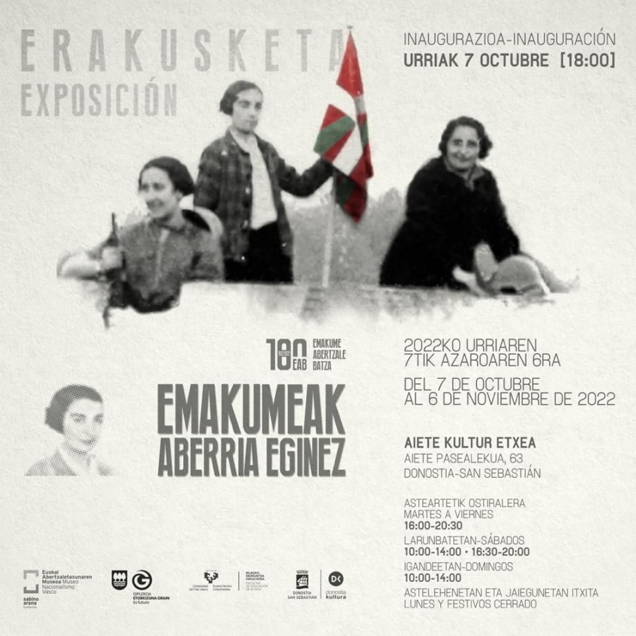 Este año celebramos el centenario de su nacimiento y la exposición Emakumeak Aberria Eginez ofrece un homenaje a la labor patriótica llevada a cabo por dicho organismo en diversos ámbitos.