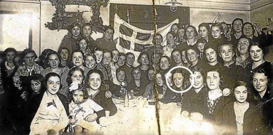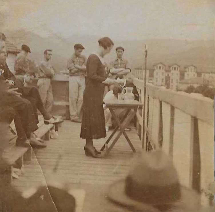 Foto 2: Grupo de emakumes en el Batzoki Tabiratarra (1932). Entre ellas, rodeada por un círculo, Gloria Zubia, tras ella Margarita Unzalu.