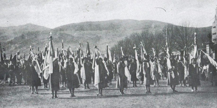 Emakume Abertzale Batza de Galdakao celebró su fiesta de inauguración oficial los días 27 y 28 de agosto de 1932. Como el de Galdakao, muchos grupos estuvieron a la espera de constituirse hasta la promulgación de la Segunda República. Según el programa, el sábado día 27 en la fiesta de emakumes y mendigoixales, después del alarde de txistularis Miren Nekane Legorburu dió una conferencia; Ramón Laborda cantó acompañado al piano por José Egileor. El domingo se celebró misa cantada en la que se bendijeron las banderas, que fueron apadrinadas por Conchita Escobar Linaza y Eli Bustintza. A continuación hubo exhibición de espatandantzas, comida y mítin.