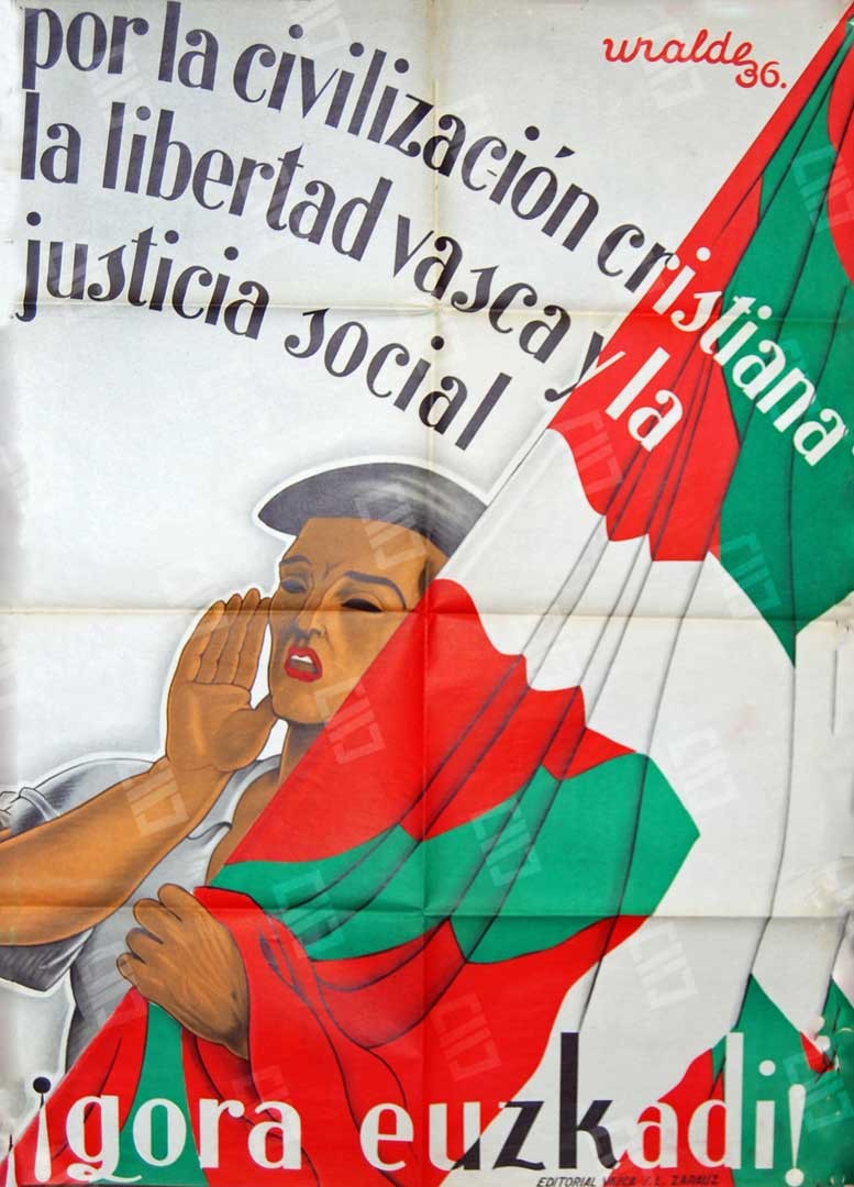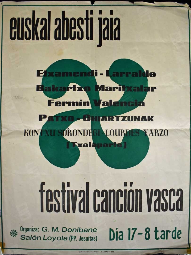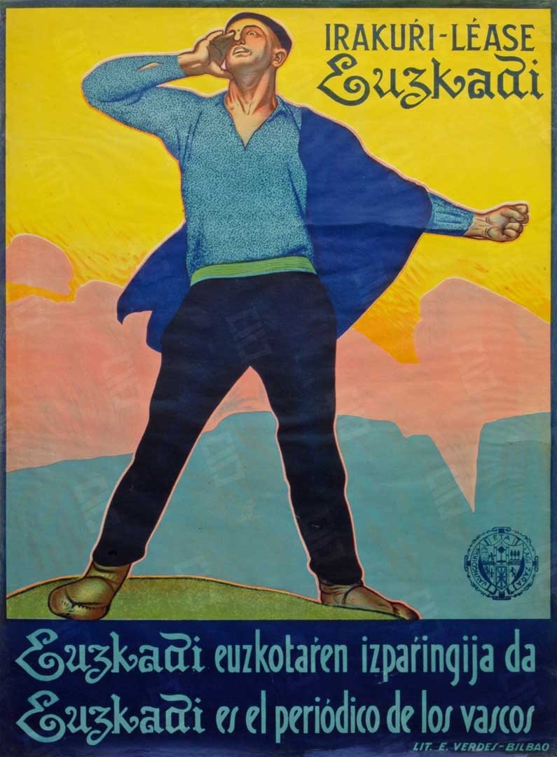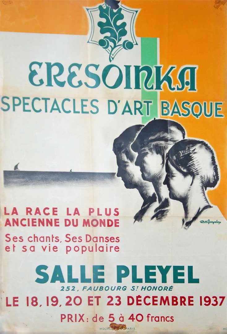 Lleva la leyenda "Eresoinka spectacles d'art basque la race la plus ancienne du munde ses chants, ses danses et sa vie populaire Salle pleyel 252 faubourg st honore le 18 19 20 et 23 décembre 1937 prix: de 5 à 40 francs". Donado por Patrick de la Sota y conservado en el Museo del Nacionalismo Vasco