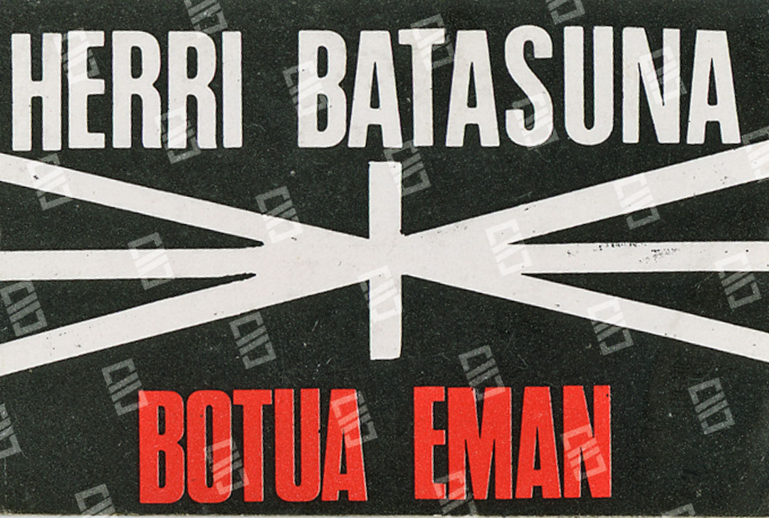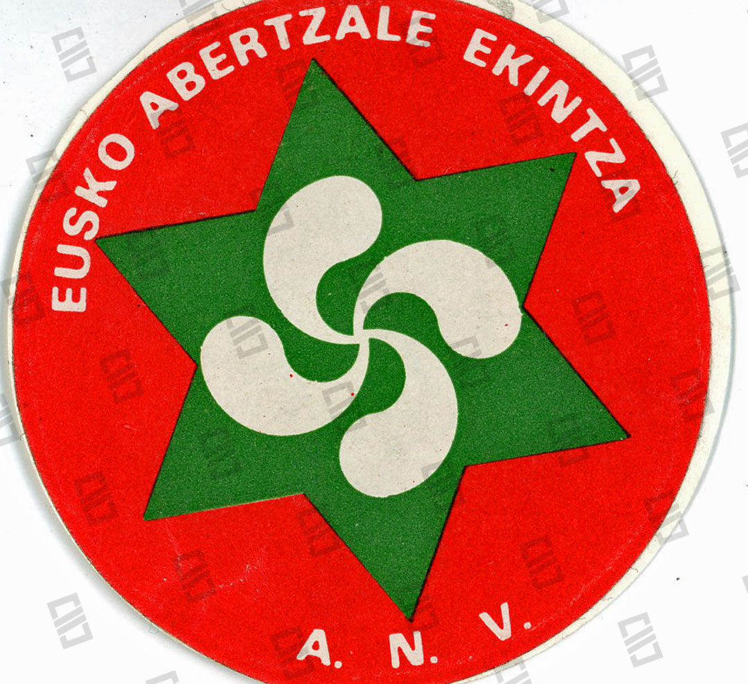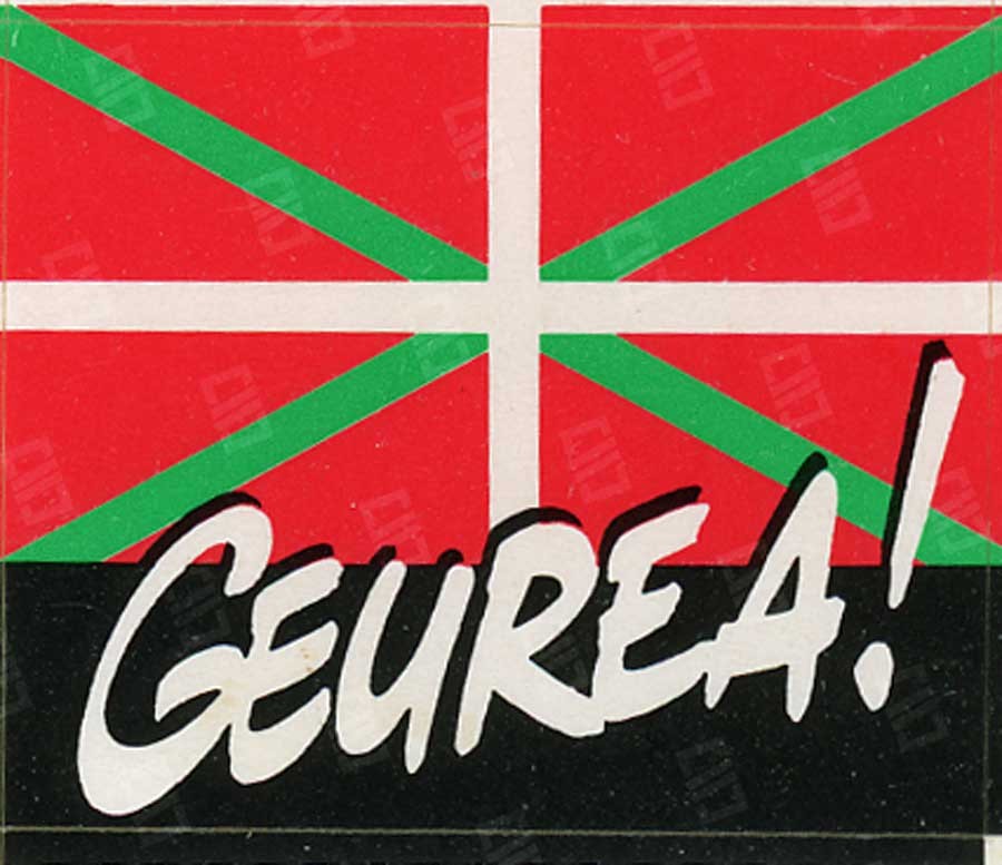 Pegatina con la leyenda "IKUSI, SENTITU, BIZI MOREA FEMINISMOA DA BIDEA!". Donada por Xabier Arginzoniz y conservada en el Museo del Nacionalismo Vasco.