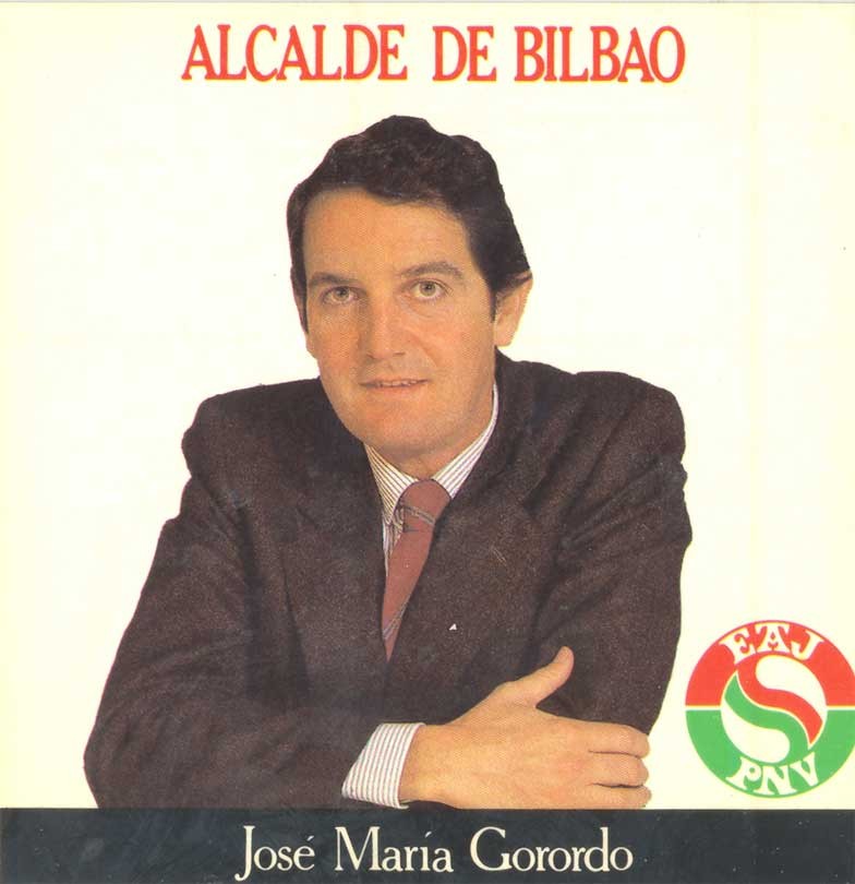 Pegatina con la leyenda "Alcalde de Bilbao José María Gorordo EAJ PNV". Donada por Amaia Agirre y conservada en el Museo del Nacionalismo Vasco.