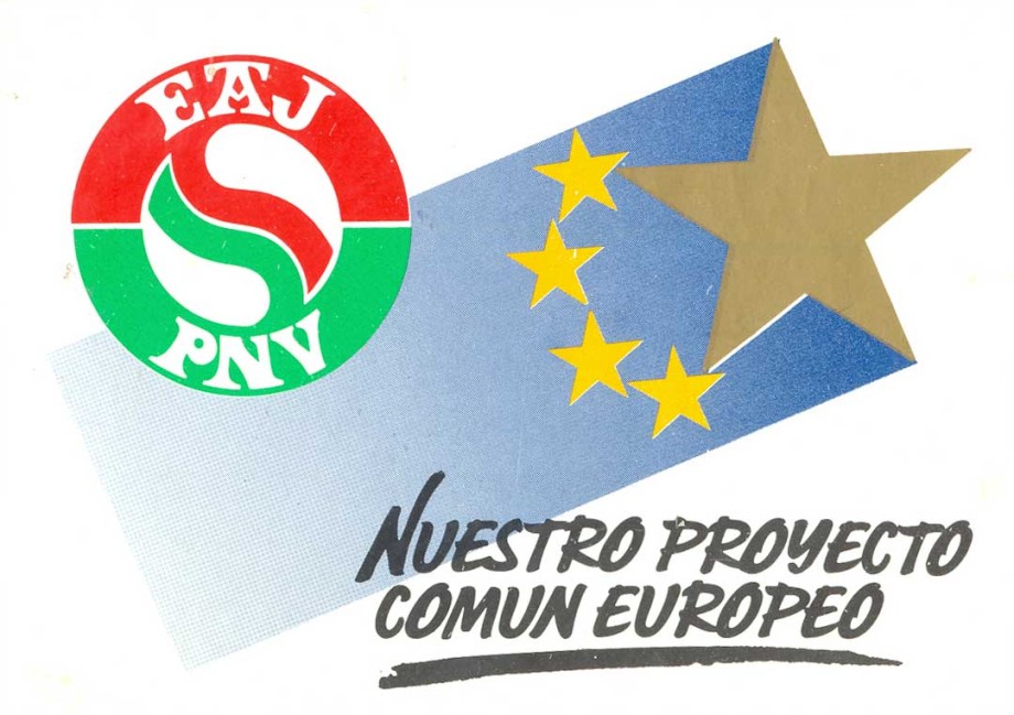 Pegatina con la leyenda "EAJ PNV nuestro proyecto común Europeo". Donada por Amaia Agirre y conservada en el Museo del Nacionalismo Vasco.