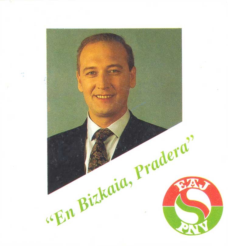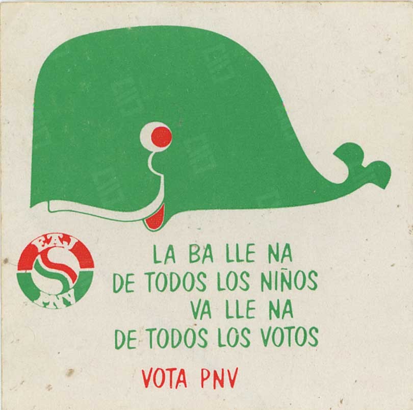 Pegatina con la leyenda "LA BA LLE NA DE TODOS LOS NIÑOS VA LLE NA DE TODOS LOS VOTOS. VOTA PNV".