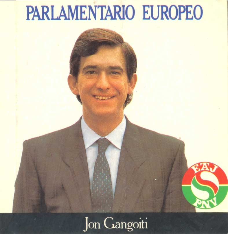 Pegatina con la leyenda "Parlamentario Europeo Jon Gangoiti EAJ PNV". Donada por Amaia Agirre y conservada en el Museo del Nacionalismo Vasco.