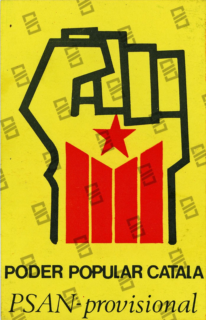 Pegatina con la leyenda "PODER POPULAR CATALA PSAN provisional". Partit Socialista d'Alliberament Nacional dels Països Catalans