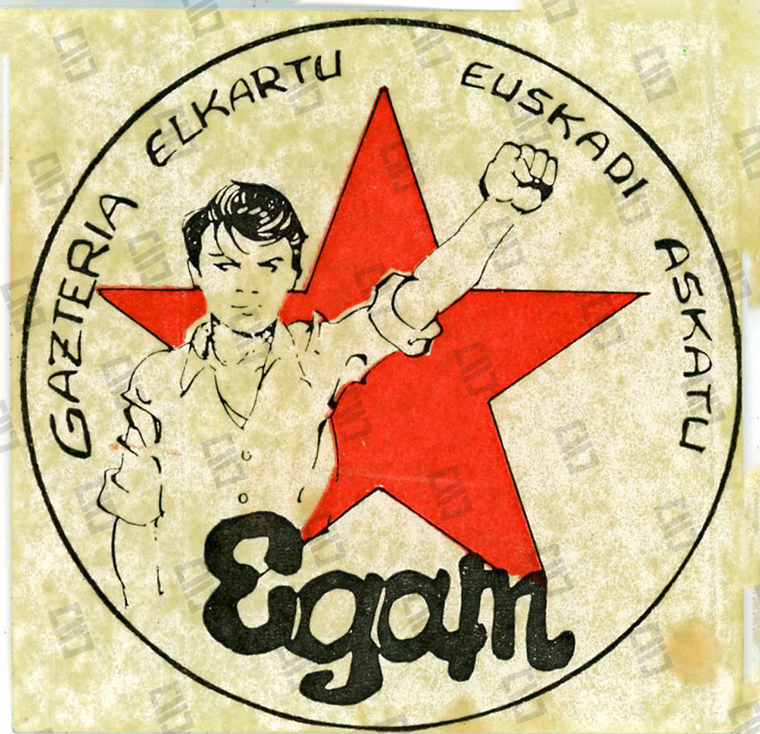 Pegatina con la leyenda "Gazteria Elkartu Euskadi Askatu EGAM".