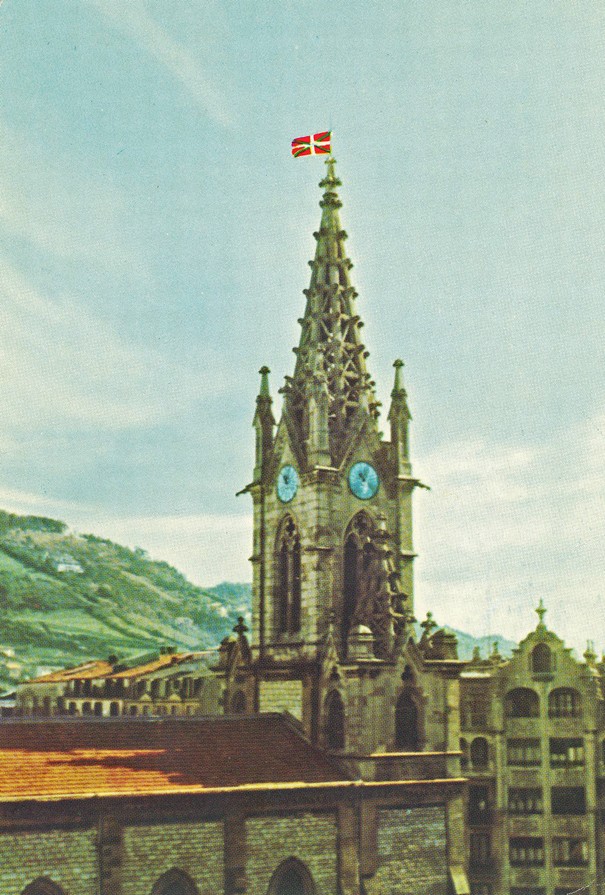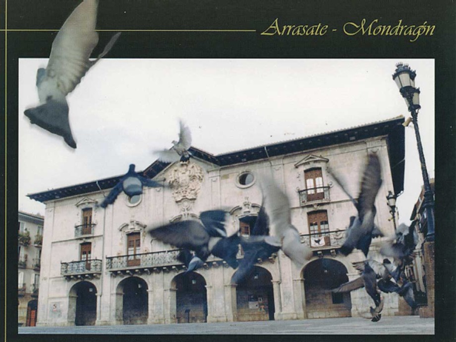 Tarjeta postal del Ayuntamiento de Mondragón, imagen tomada por Antonio Murillo. Donación de Luis Ángel Gainza y conservada en el Museo del Nacionalismo Vasco.