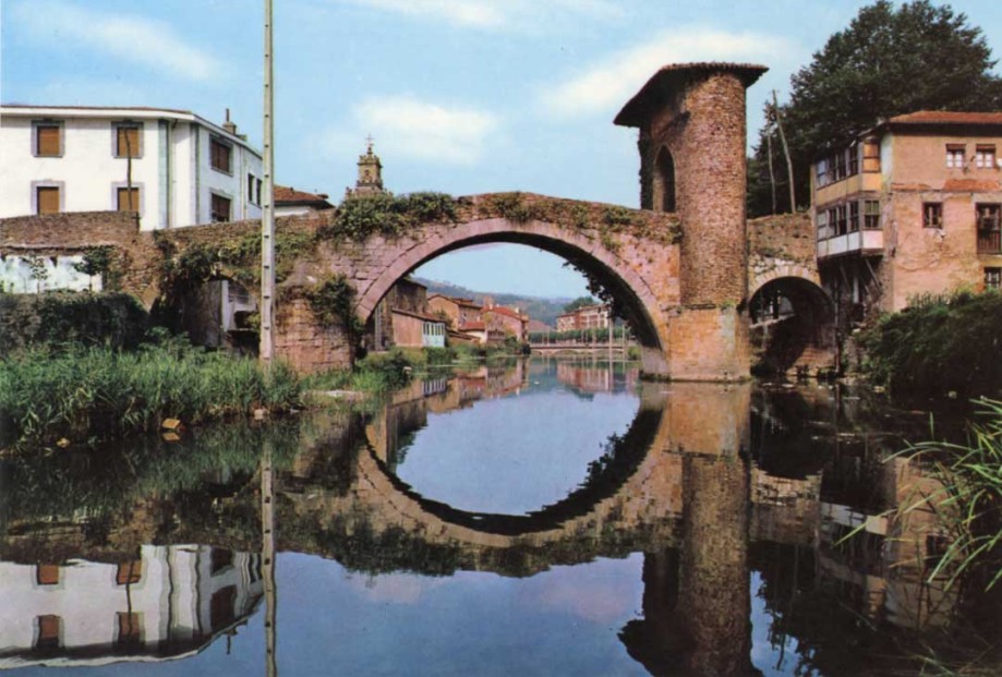 Tarjeta postal con la imagen del Puente Viejo de Balmaseda. Conservada en el Museo del Nacionalismo Vasco.