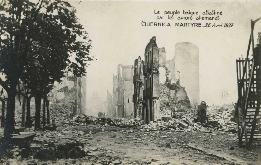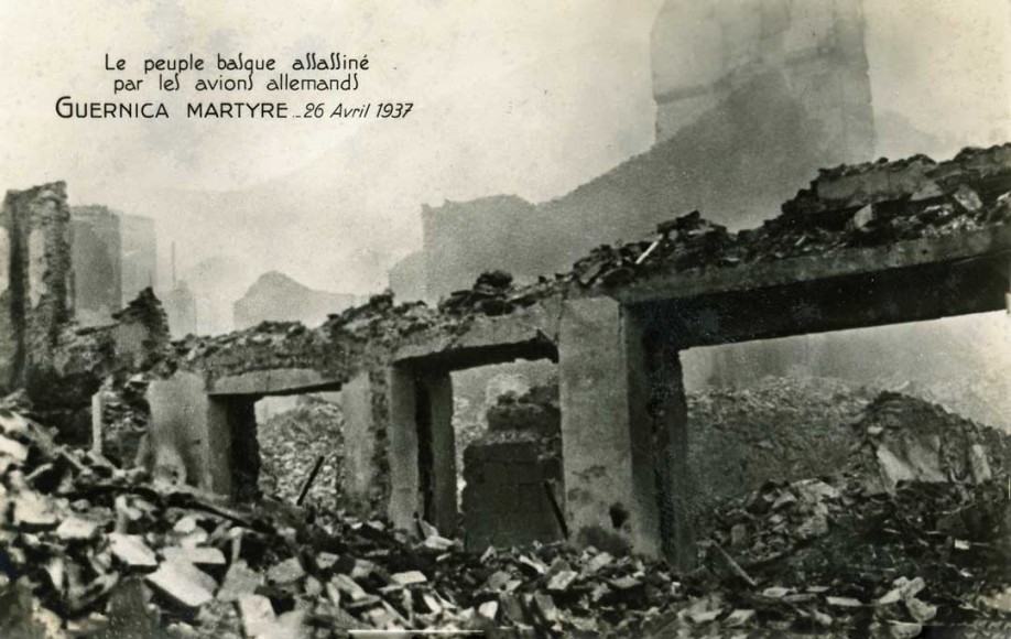 Tarjeta postal con la reproducción de una fotografía de edificios en ruinas después del bombardeo de Gernika. Donada por Ander de Arambalza y conservada en el Museo del Nacionalismo Vasco.