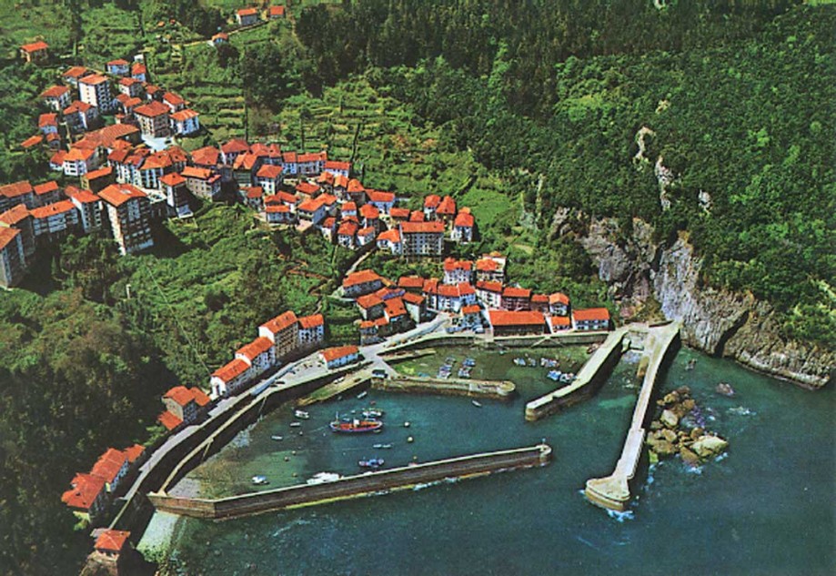 Tarjeta postal de la vista aérea de Elantxobe. Conservada en el Museo del Nacionalismo Vasco.