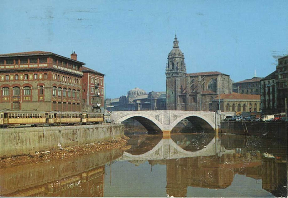 Tarjeta postal "Bilbao. Puente de San Antón". Perteneciente al fondo Jaime de Olaso y conservada en el Museo del Nacionalismo Vasco.
