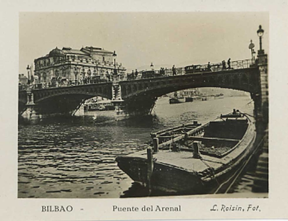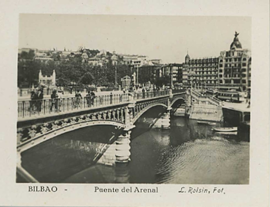 Tarjeta postal del Puente del Arenal, imagen tomada por el fotógrafo francés Lucien Roisin. Conservada en el Museo del Nacionalismo Vasco.