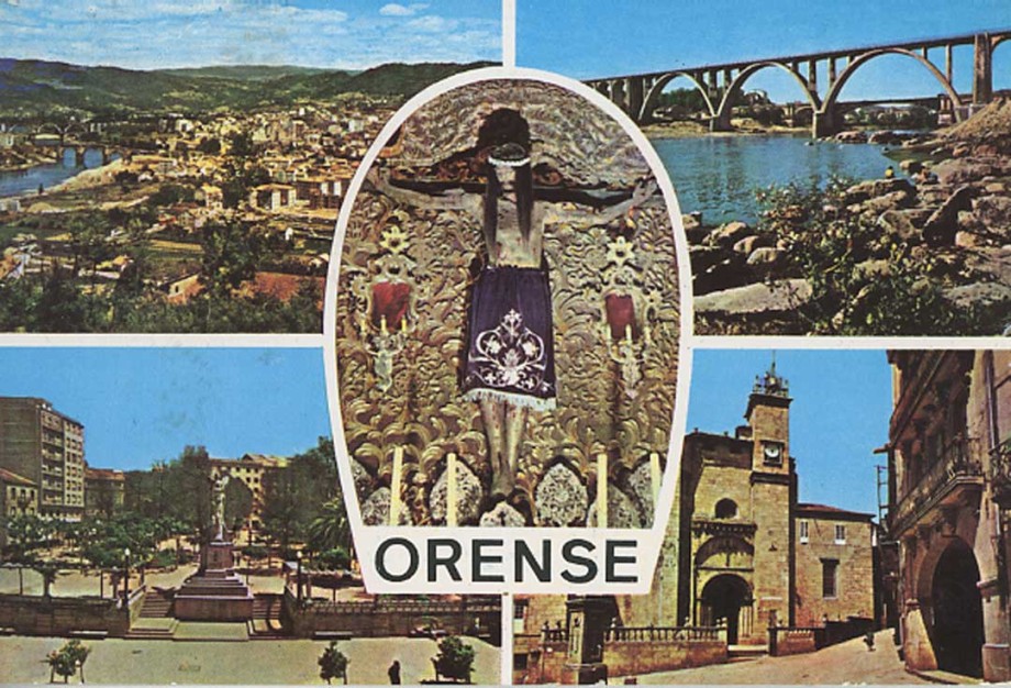Tarjeta postal de distintos rincones de Orense. Fondo Jaime de Olaso y conservada en el Museo del Nacionalismo Vasco.