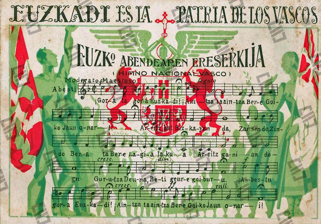 Hace 115 años, el semanario nacionalista vasco Patria informaba en su portada la adopción del Eusko Abendaren Ereserkia como himno nacional vasco. Durante la dictadura franquista los nacionalistas vascos aprovechaban la similitud del Eusko Abendaren Ereserkia con la música de la ezpata-dantza en la que estaba basado para que los txistularis lo interpretaran públicamente en el momento de acompañar musicalmente este baile. Tras el final de la dictadura franquista, el 14 de abril de 1983 el Parlamento vasco aprobó la Ley 8/9183 en la que se declaraba, nuevamente, la música del Eusko Abendearen Ereserkia como Himno Oficial de Euskadi. Medidas: Largo: 14 cm x ancho: 10 cm. Nº de inventario: 11/1957.