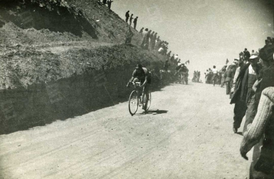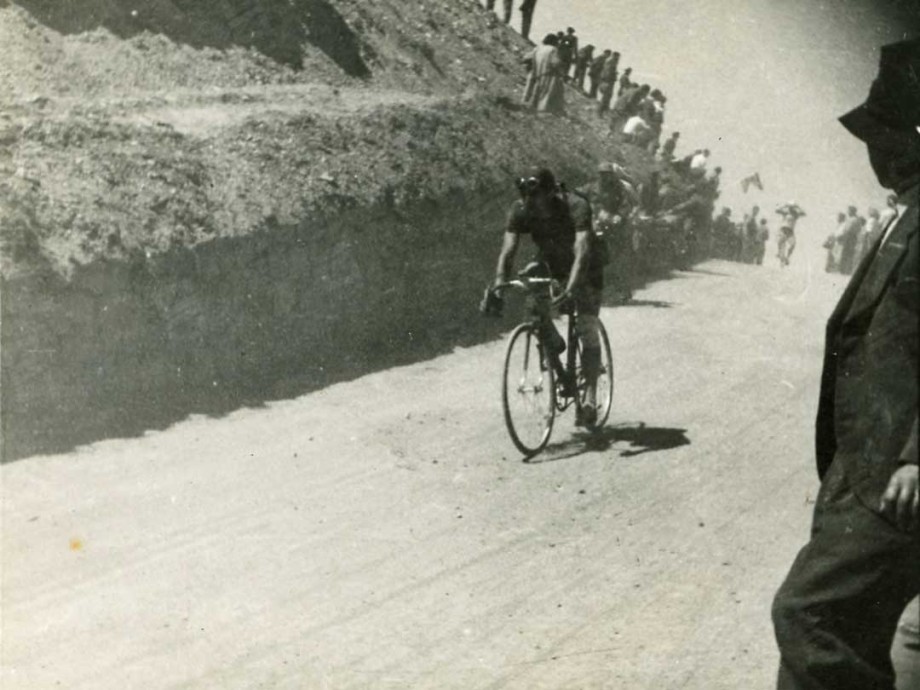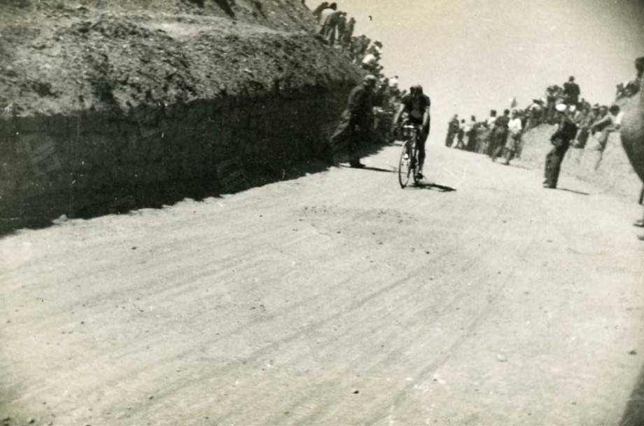 Momento en el que el ciclista "Robie", subió primero la colina del Tourmalet en el Tour de Francia.Donada por Primi Abad Gorostiza y conservada en el Museo del Nacionalismo Vasco.