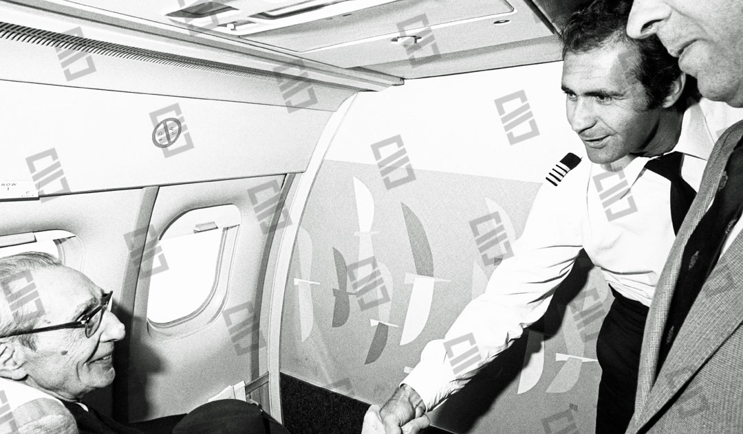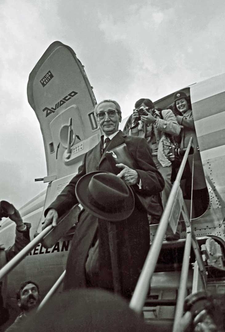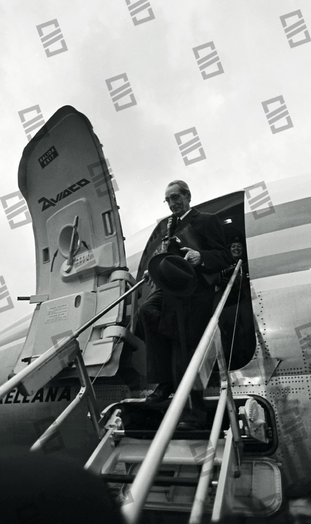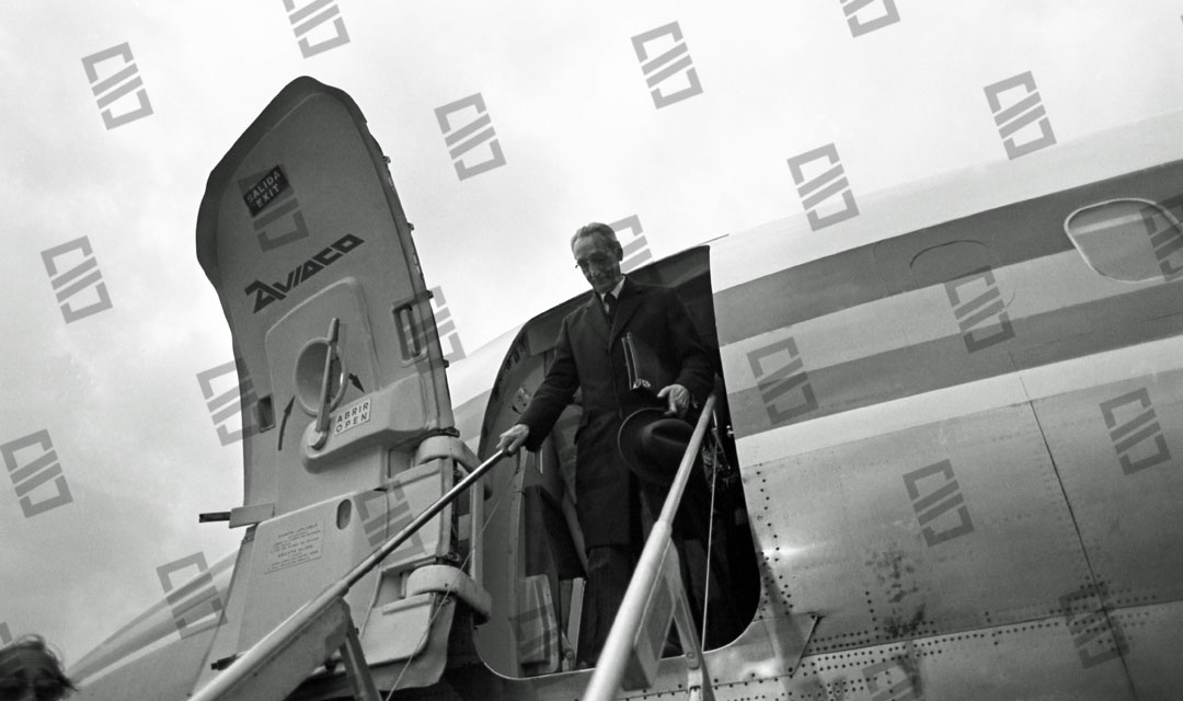 El Lehendakari Leizaola en el aeropuerto de Sondika