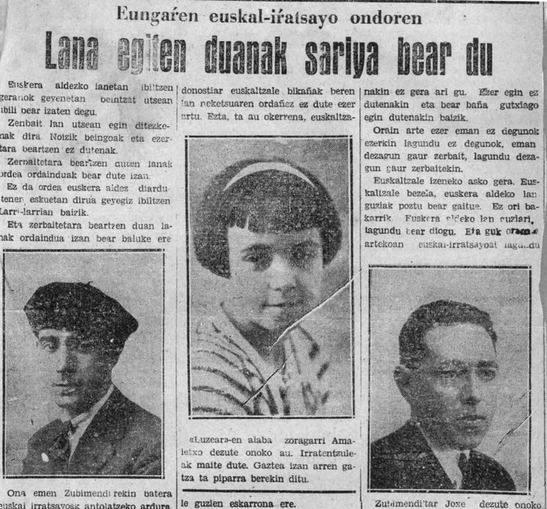Durante todo el tiempo escribe varios trabajos, sobre todo de opinión en periódicos y revistas como “Iru Txulo” y crea una asociación en pro de los dialectos vascos “Arbasoen Euzkera Zaleak”, editando la revista “Erri-Euzkera”.