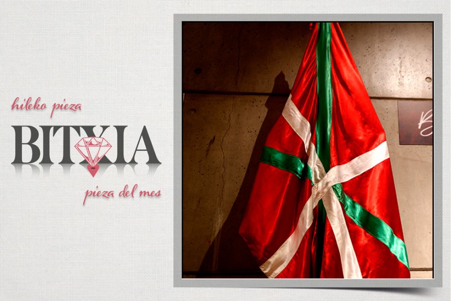 Primera ikurriña que ondeó en Ajuria Enea. Tras la aprobación del decreto que regulaba el escudo del Gobierno Vasco, fue sustituida por otra que incorporaba dicho escudo.